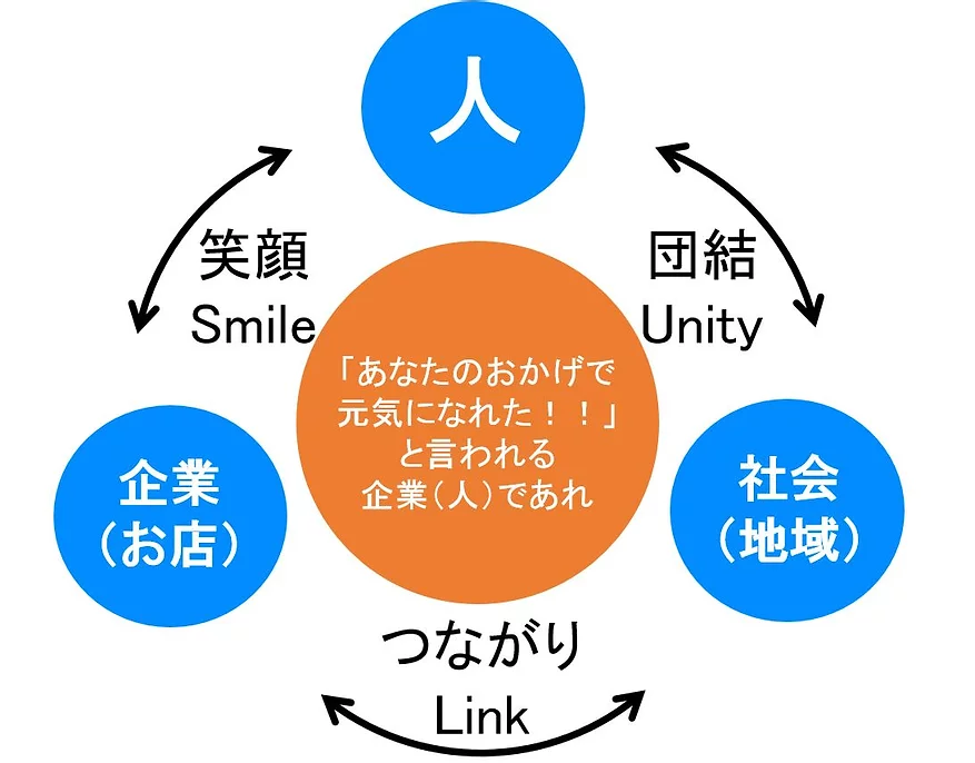 私たちがキッカケとなり、売り手(弊社)、買い手(お客様)、世間 (社会・地域)の全てが満足し、幸せになるよう活動します。